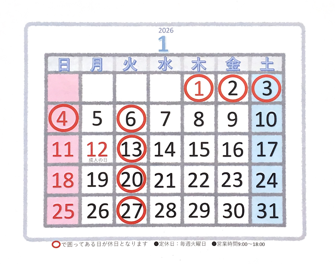 🍀令和8年1月の休日・営業時間のお知らせ […]
